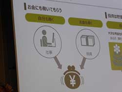 講義内では、証券会社ならではの「お金の価値が変わること」を切り口に、大学卒業後の就職、一人暮らし、旅行、結婚、出産などのライフイベントのイメージをどのように捉える必要があるのかを丁寧にお話頂きました。