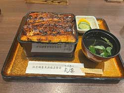 それから名古屋駅から再び乗車して、浜松市につく頃には15時ごろになっていました。前日に慌てて予約したビジネスホテルには夕方ごろに到着し、荷物をおいて浜松名物うな重を食べに行きました。このうなぎはボリュームがバツグンでした。お吸い物には、初めて食べたのですが、うなぎの肝が入っていました。調べると肝にはビタミンが多く含まれているそうです。食感はガムのようで独特でした。名物というだけあって、これまで食べたうなぎよりも大きく、ボリューム満点で、さすがに食いしん坊な私でも満腹になりました。