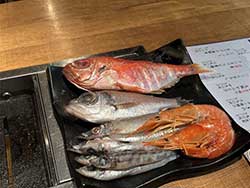 そして、一通り見終わったのち、夜6時ごろに水族館の近くで深海魚が味わえる、鉄板のある居酒屋に行きました。折角なので主に深海中層 (200~1000m)にいる、普段目にすることも食べることもない珍しい魚を焼いて食べてみることにしました。
