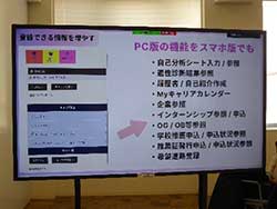 また、昨年に引き続き、情報メディア学科の卒業生の社員が授業内でOG紹介として母校に足を運んでくれました。