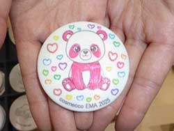 井上ゼミ(cosmecco EMA)は、昨年に引き続き「夜間の交通事故を減らすためのリフレクターの認知拡大と着用促進」のため、反射材の端材を活用したワークショップを開催しました。今回は「暗闇で光る! オリジナルのリフレクター缶バッジを作ろう! 」と題して、福井県の企業から無償提供頂いている反射素材端材を猫やクマなどが描かれた台紙にアイロン圧着し、好きな色に塗ったり、絵を描くことで世界に一個のオリジナルリフレクター缶バッジを作成しました。ワークショップの際は楽しく、その後にも長く使われることでゴミにもならない点が特徴です。2日間で300人以上が参加して下さいました。
