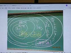 授業内では、一口にネットワーク(縁)と言っても自身で決定することができない非選択縁と自身で決定することが可能な選択縁の二つがあり、それらは、家族関係等に代表される「血縁」、学校や地域の縁である「地縁」、電子ネットワークによる結びつきである「電縁」に分類されること等が取り上げられました。90分の講義が終わった後に生徒たちは、演習課題として各々関心のある小説、アニメ、漫画、ドラマなどに登場するキャラクターを取り上げた家系図の作成にチャレンジしました。