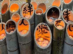 会場で竹灯篭を見つめていて、火ってやっぱりきれいだなと思いました。ろうそくの火がゆらゆらと揺れながら燃えているのを眺めるとなんだか心が落ち着くような気がするんですよね。